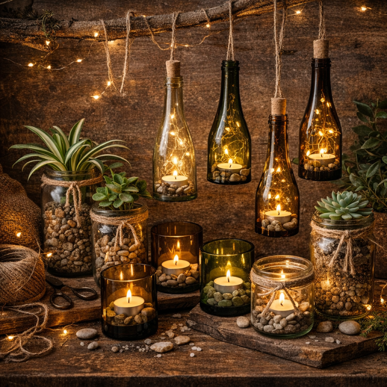 Upcycled glass bottles and jars to add some sparkle to your home and brighten someone's day!